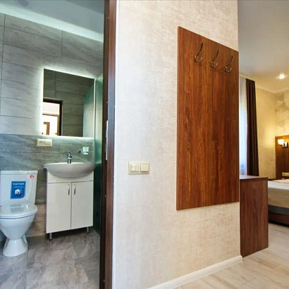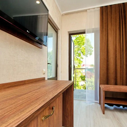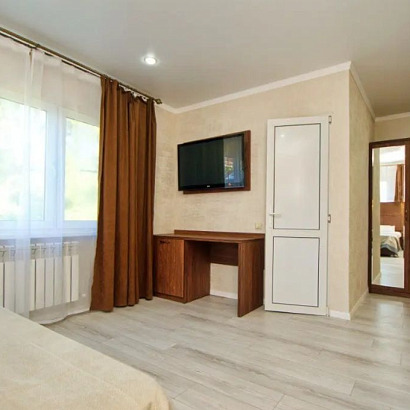 3-х местные номера "Полулюкс" со всеми удобствами, ТВ, холодильником, кондиционером. Оборудованы 2-х спальной и 1-но спальной кроватями.