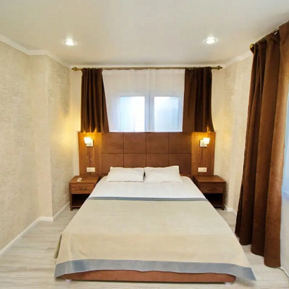 2-х местные номера "Полулюкс" со всеми удобствами, ТВ, холодильником, кондиционером. Оборудованы 2-х спальной кроватью.
