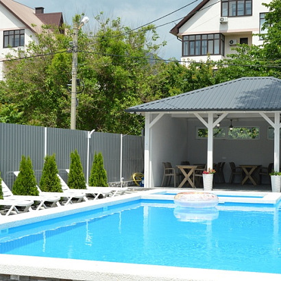 Инфраструктура: подогреваемый бассейн (10*4) с отделением для детей, Wi-Fi, кухня для самостоятельного приготовления пищи, детская рлощадка, гладильная доска, мангальная зона, стирка (платно), детские коляски (платно), детская кроватка (платно).