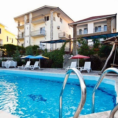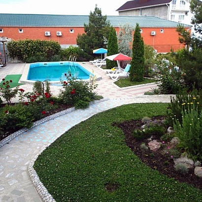 Инфраструктура: Wi-Fi бесплатно, подогреваемый бассейн, шезлонги, зонтики, детская площадка, беседка для отдыха, мангальная зона, бар, прачечная, утюг. Есть собственное кафе (за доп плату).