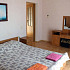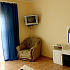 3-х местные номера со всеми удобствами: двуспальная кровать, кресло-кровать, шкаф, тумбочки, стол, стулья, туалетный столик, обеденный стол, электрочайник, посуда, сейф, телевизор, холодильник, кондиционер, санузел, балкон с видом на море.