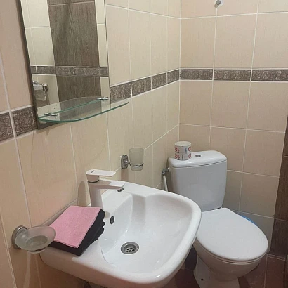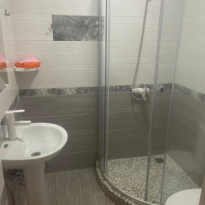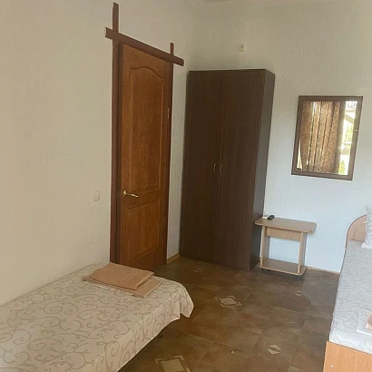 В каждом номере: кровати (в 2-местном - раздельные; в 3-местном - совместная + односпальная) необходимый набор мебели, душ, туалет, умывальник, бесплатный Wi-Fi, кондиционер, холодильник, телевизор, стирка за дополнительную плату, сушилки для белья у каждого номера. 2-местный номер расположен на 1 этаже и НЕ имеет балкона. Из 3-местного номера - имеется выход на общий балкон.