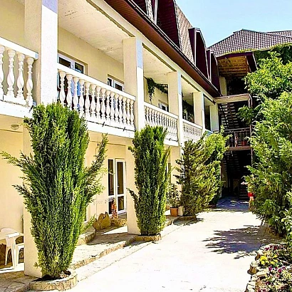 Мини-отель «77» расположен в Республике Крым в городе-курорте Судак, недалеко от центра города, в 7 минутах ходьбы от моря, рядом аквапарк, подножие мыса Алчак. В шаговой доступности любые услуги, кафе, развлечения, бары и рестораны, магазины и банки, аптеки, клубы и дискотеки. Для Вашего отдыха современное двухэтажное этажное здание с уютными номерами со всеми удобствами на 2−3 человека, благоустроенный двор с обилием зелени, цветов, в тени экзотических деревьев. В каждом номере: кондиционер, телевизор с плоским экраном, холодильник, на всей территории бесплатный WI-FI. Подача холодной и горячей воды круглосуточно. В каждом номере есть ванная комната с душем, феном и бесплатными туалетно — гигиеническими принадлежностями. Смена белья и полотенец. Напротив каждого номера столик и кресла, где можно отдохнуть на свежем воздухе. Есть кухня для самостоятельного приготовления пищи с полным набором посуды. Так же имеется мангальная зона и уголок для отдыха. Прямо возле отеля есть ресторан и столовая, где подают блюда европейской и крымской кухни. Кроме того, гости могут заказать доставку еды и напитков в номер.
