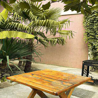 Отель находится в 300 метрах от песчано-галечного пляжа. Дорога до моря ровная, до набережной не более 10 минут пешком. По пути к морю находится рынок. где можно купить свежие овощи и фрукты.
