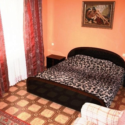 2, 3, 4-х местные номера комфорт с удобствами. В номере: душ, туалет, умывальник, горячая вода, кондиционер, телевизор, холодильник. Односпальные и, или двуспальная кровати, шкаф, прикроватные тумбочки, журнальный столик, кресло.