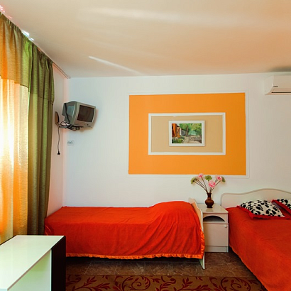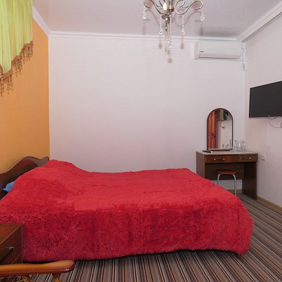2-х местные номера с удобствами Стандарт: односпальные или двуспальная кровати, шкаф, тумбочки, туалетный столик, кондиционер, телевизор, холодильник (в номере или на два номера), санузел, душ, балкон или терасса. Расположены на 2-ом и 3-ем этажах, рядом с номерами стол и стулья для отдыха.