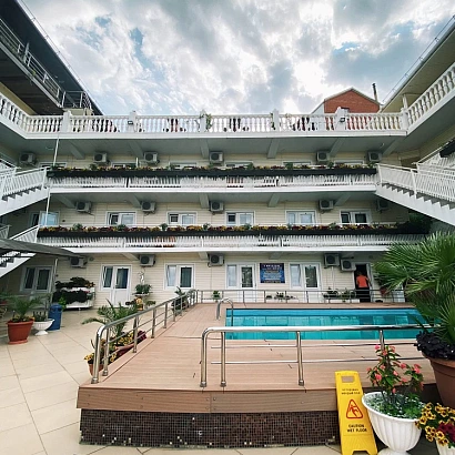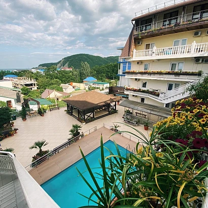 Отель «Экватор» расположен на берегу Черного моря в курортном поселке Лермонтово. Это 5-тиэтажное здание с комфортабельными номерами различной категории. В Вашем распоряжении находятся 2 бассейна, бар и мангальная зона, бильярд и настольный теннис. Для «самых юных» туристов на территории отеля расположена крытая детская игровая площадка. На территории отеля также расположены беседки и столики с видом на горы и море. Для гостей прибывших на личном автотранспорте в отеле имеется собственная парковка. На территории отеля, а также «в двух шагах» от него, находятся магазины, аптека и кафе, где вы всегда можете приобрести товары первой необходимости и провести свободное время.