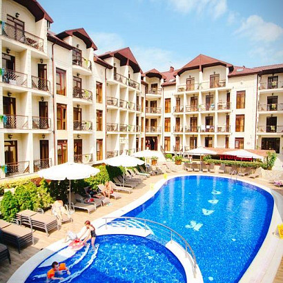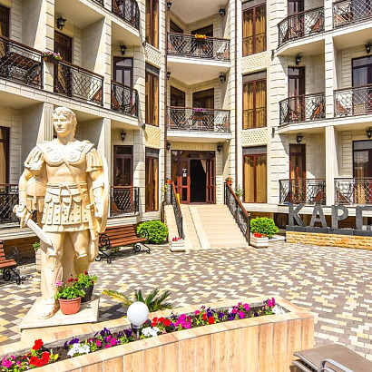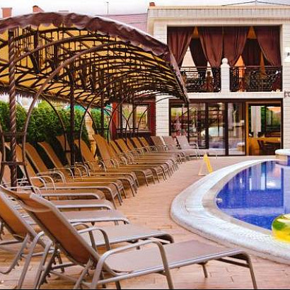 Описание: красивое здание, современные номера, качественная мебель, оригинальное оформление помещений, высокий уровень комфорта и сервиса. Вежливый персонал порадует Вас своим вниманием и заботой. Комфортабельные просторные номера со всеми удобствами, новая сантехника, удобная мебель, разнообразный дизайн комнат – вот основные условия отдыха в отеле. Отель состоит из трех корпусов. С 2023 года работает лифт.
