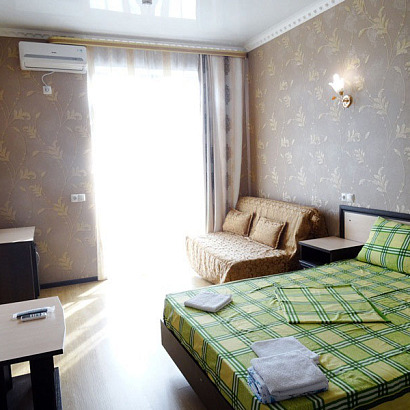 • 2-местные номера с удобствами. Во всех номерах отеля есть балкон и все необходимое для комфортного проживания: кондиционер, холодильник, жк-телевизор, чайник и фен.