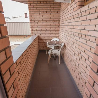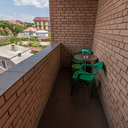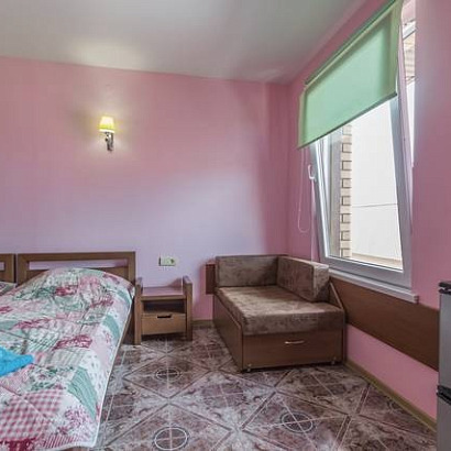 3-х местный номер с удобствами, с балконом: две односпальные кровати и раскладной диван, тумбочки, шкаф для одежды, комод с зеркалом, (стол со стульями на балконе), кондиционер, холодильник, телевизор, санузел с душем.