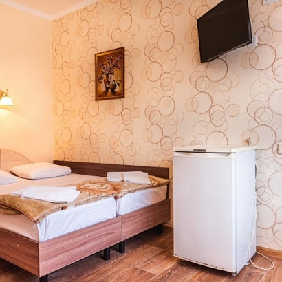 2-х местный номер с удобствами и балконом: односпальные кровати, можно сдвигать по желанию, шкаф, тумбочки, телевизор, холодильник, сплит-система, сейф, посуда, санузел, душ, фен, средства личной гигиены, балкон.
