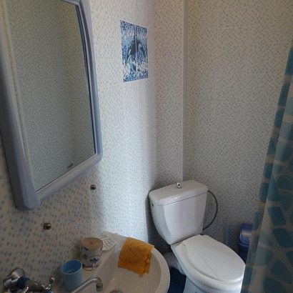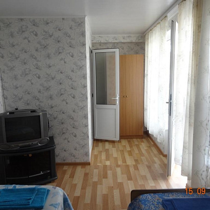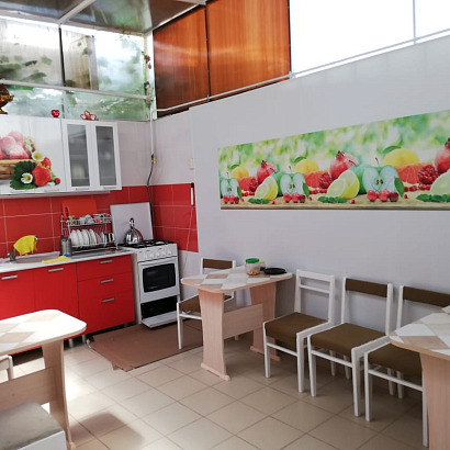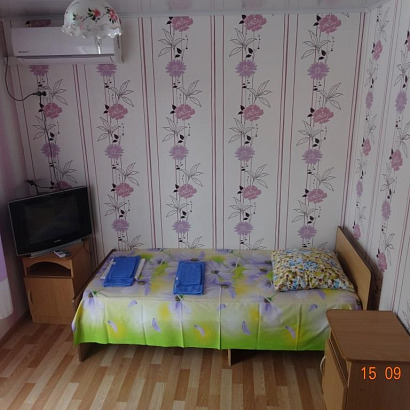 Номера: 2,3 -х местные номера с удобствами, телевизором, холодильником, кондиционером. Доп.место (еврораскладушка/евроматрас) устанавливается только в 3-х местные номера. Перед каждым номером есть столик и стулья. Номера расположены на 1-ом и 2-ом этаже.