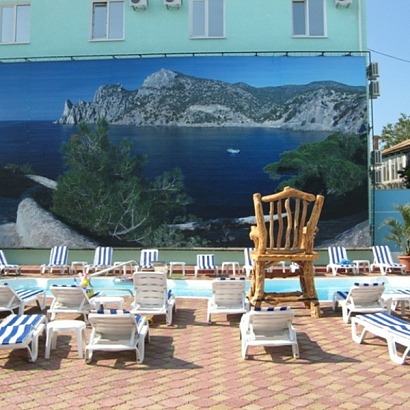Расположение: в 7-10 минутах хотьбы от моря, недалеко от развлекательного комплекса Аквапарк на улице Гагарина. На территории гостиницы расположен открытый бассейн с шезлонгами, беседки для отдыха, рядом продуктовые магазины, кафе, столовые, центр досуга.