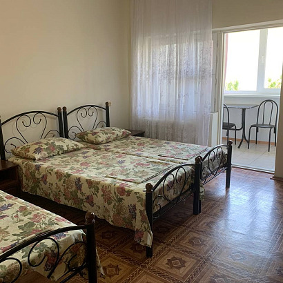 2,3-х местные номера с удобствами на блок (на 4 номера 2 душа и 2 туалета, так же можно пользоваться удобствами на территории). Во всех номерах телевизор ЖК, холодильник и кондиционер, кровати односпальные, можно сдвигать по желанию. 3-х местные номера с балконом. Номера расположены на 2-ом этаже. Доп.место - кровать, установлены только в 3-х местных номерах.