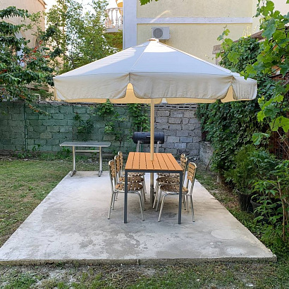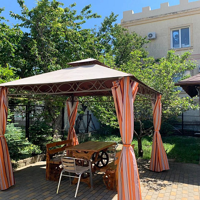 Инфраструктура: Wi-Fi бесплатно, оборудованная летняя кухня с горячей водой, гладильная доска, беседка, мангальная зона, на территории душ и туалет, стирка за доп плату (250 руб).