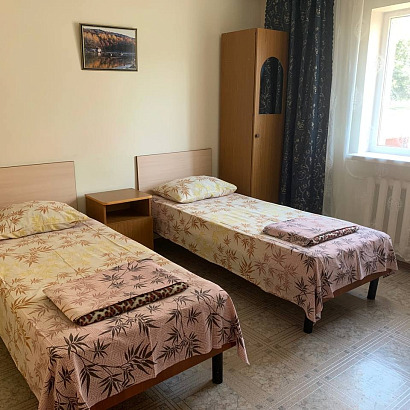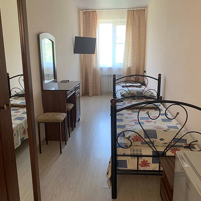 2,3-х местные просторные номера со всеми удобствами, холодильником, кондиционером и телевизором ЖК. Двуспальные кровати в 2-х местных номерах, в 3-х местных - односпальные, можно сдвигать по желанию. Доп.место: кресло-кровать, установлены в номерах.