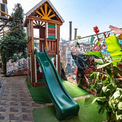 Инфраструктура: Wi-Fi, Детская игровая площадка, Кухня для самостоятельного приготовления пищи (посуда, газовая плита, микроволновая печь, чайник, тостер и т.д.). Возможно заказное или 3-х разовое питание.