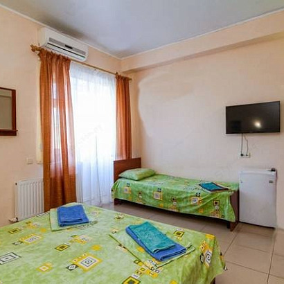 3-х местные полулюкс площадью 20 м²; в номере: встроенный шкаф, двуспальная и односпальная кровати, тумбочки, зеркало, столик, стулья, санузел (душ, раковина, туалет), телевизор, холодильник, сплит система, балкон или эркер