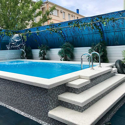 Размещение: Современное 3-х этажное здание с небольшой территорией и бассейном.