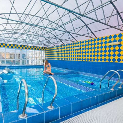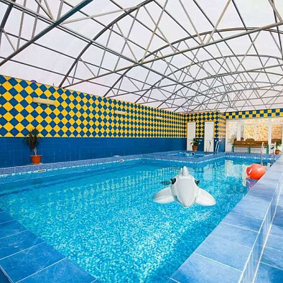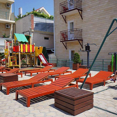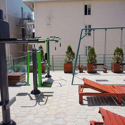 Инфраструктура: Wi-Fi, крытый бассейн с подогревом (12*5,5), зона отдыха на свежем воздухе около бассейна, детская площадка, качели, тренажеры на открытом воздухе, есть своя выделенная часть на пляже с шезлонгами и зонтами, парковка, зона барбекю. Для детей проводится анимация 2 раза в неделю. Есть собственная столовая (питание за доп плату на месте), кухни для самостоятельного приготовления пищи нет.
