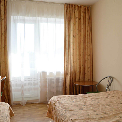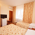 4-х местные 2-х комнатные номера с удобствами, ТВ, холодильником, кондиционером. Есть номера с балконом и без балкона. В комнатах: кровати, прикроватные тумбочки, диван-кровать, шкаф для одежды, журнальный столик, туалетный столик с зеркалом, стул. Номер небольшой, комнаты изолированные.