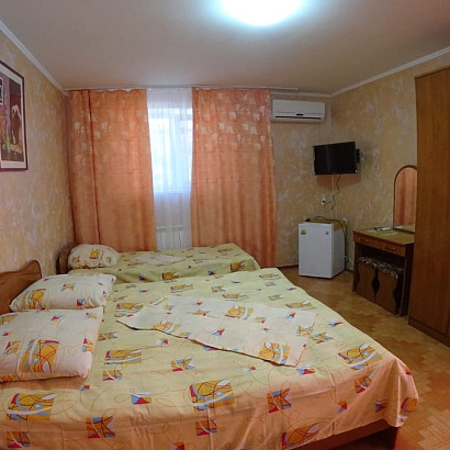 2,3-х местные номера с удобствами, телевизором, холодильником, кондиционером. 2-х местные номера расположены на 1-ом и 2-ом этаже, 3-х местные - на 2-ом этаже.