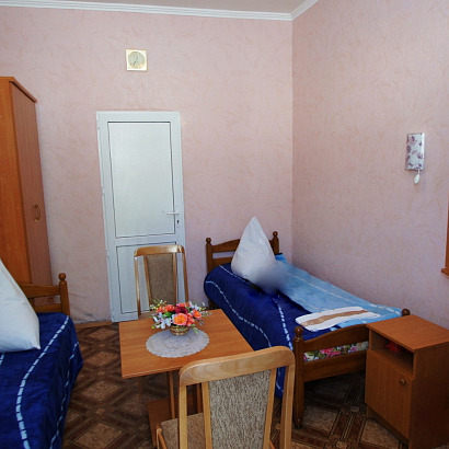 2-х местный номер с удобствами: 2 односпальные кровати, шкаф, тумбочки, чайник, телевизор, холодильник, кондиционер, санузел, душ. На 1 и 4 этажах с балконом.