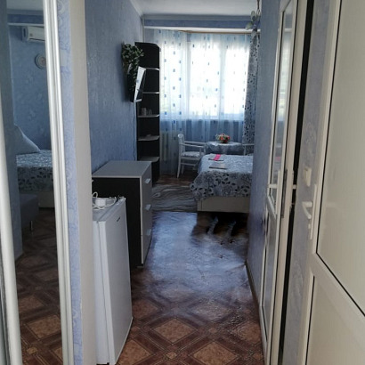 2-х комнатный 4-х местный номер с удобствами: в одной комнате двуспальная кровать и кресло-кровать, в другой двухспальный диван и кресло-кровать, комод, стол, чайник, стулья, телевизор, холодильник, кондиционер, санузел и душ раздельно, (возможно расселение до 6 человек, дополнительные места под запрос - 16950р)