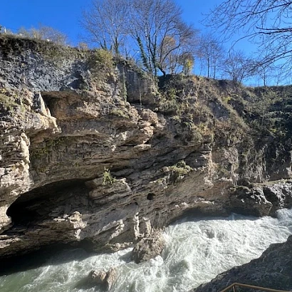 Экскурсия к Водопадам Руфабго – одному из самых популярных и живописных природных достопримечательностей Адыгеи. Ни одно из мест не пользуется у туристов такой популярностью, как ущелье реки Руфабго с каскадом водопадов. Тропа, выбитая тысячами ног, приводит к огромной нависшей скале. Туристы назвали ее «Пронеси, Господи!», и это не случайно. Под навесом скалы – огромный грот. Здесь всегда сухо и безветренно, а сразу за гротом узкая тропинка, прилепившаяся к скале, выводит в буковый лес, наполненный свежестью и прохладой. Всего в ущелье этой реки 10 водопадов, но самыми красочными являются «Шум», «Каскадный», «Сердце Руфабго», «Шнурок», «Чаша любви и Девичьи Косы». Пройдете по глубокому ущелью, древнему тектоническому разлому с крутыми склонами, каменными террасами, гротами и отвесными скальными коридорами высотой до 150 м.