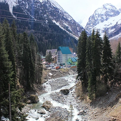 В посёлке Домбай вы проведёте незабываемый день: с помощью канатной дороги подниметесь на гору Мусса-Ачитара (за доп. плату - 2700 руб/чел), полюбуетесь Домбайской панорамой, отведаете традиционные блюда национальной карачаевской кухни.