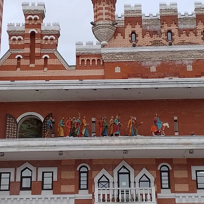 - Патриаршая площадь со сказочным замком и движущейся композицией «12 апостолов»: открываются дверцы, откуда под мелодию выезжают скульптурные фигуры, демонстрируя «вход господа Иисуса Христа в Иерусалим»;