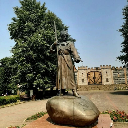 Заглянем на Площадь Штыба, чтобы посмотреть памятник Дзаугу Бугулову. Он считается основателем поселения, возле которого впоследствии построили крепость Владикавказ. С площади хорошо видны горы.