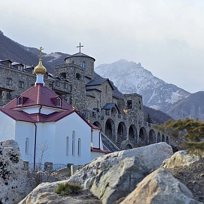 Посетим Аланский Свято-Успенский мужской монастырь - «Духовное сердце Осетии» – самую высокогорную православную обитель духовной жизни, расположенную на высоте 1300 м. Монастырь похож на средневековый замок, возвышающийся на фоне неприступных Кавказских гор. Темные каменные стены православного оплота гармонично вписываются в местный пейзаж и создают колоритный дуэт рукотворного мира и могучих скалистых отрогов. Дополняет аутентичный пейзаж мощная горная река Фиагдон, которая течет прямо у подножья Аланского монастыря. Здесь можно подняться по «лестнице отпущения грехов», насладиться тишиной и уединением обители, а также увидеть точную копию Аланских храмов.