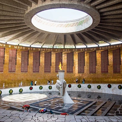 Посещение историко-мемориального комплекса «Героям Сталинградской битвы» на Мамаевом Кургане– главная высота России. 200 ступеней — по числу дней и ночей Сталинградской битвы отделяют вершину кургана от подножия. Вы пройдёте этот путь вместе с экскурсоводом и увидите как безмолвно горит Вечный огонь, освещая своим светом более семи тысяч имён погибших за главную высоту России. Пешеходная экскурсия с осмотром всех объектов: площадь Скорби, скульптура «Родина-мать зовет!», композиция «Память поколений», аллея пирамидальных тополей, площадь «Стоявших насмерть!», стены-руины, площадь Героев. Посещение зал воинской славы: Вечный огонь ипросмотр смены Почётного караула.