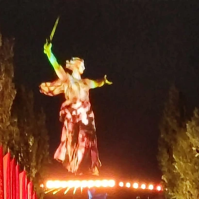 Вечером, с наступлением сумерек рекомендуем отправиться на Мамаев курган (от гостиницы - прямая ветка общественного транспорта; посещение по желанию, самостоятельно). На территории мемориально комплекса «Мамаев Курган» планируется красочная световая инсталляция «Свет Великой Победы»(демонстрируется 8 - 9 мая),которуюзавершает пышный праздничный фейерверк. Грандиозный монумент «Родина-мать» «оденется в золото» и будет «менять платья» из лазерных лучей и кадров военной хроники.