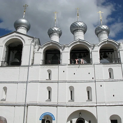 Экскурсия в РОСТОВСКИЙ КРЕМЛЬ - главную достопримечательность города, где «Иван Васильевич менял профессию», и поэтому, кажется, так узнаваемы его грандиозные крепостные стены и башни, стройные пятиглавые надвратные храмы, парадное крыльцо Красных палат. Ведь все эпизоды, связанные с перемещением во времени героев Куравлева и Яковлева, снимались именно в Ростовском Кремле. Именно по галереям Кремля бегали их незадачливые герои, и именно на настоящей кремлевской звоннице управдом Бунша, запутавшись в хитросплетениях веревок, исполнил колокольный «Чижик-пыжик». Архитектурный ансамбль Кремля увидел наши дни, сохранив все первозданное величие и красоту. Вы полюбуетесь жемчужиной Ростовского Кремля – колоссальным и величественным, древнейшим Успенским собором.Высота собора – 60 метров! Это старейшее здание в городе, ведь заложен Успенский собор был еще 1161 году. В XVII веке к Успенскому собору была пристроена Звонница – красивая каменная четырехглавая аркада с 15 колоколами. Вес самого большого и самого древнейшего из действующих колоколов в России – колокола «Сысой» - 32 тонны.