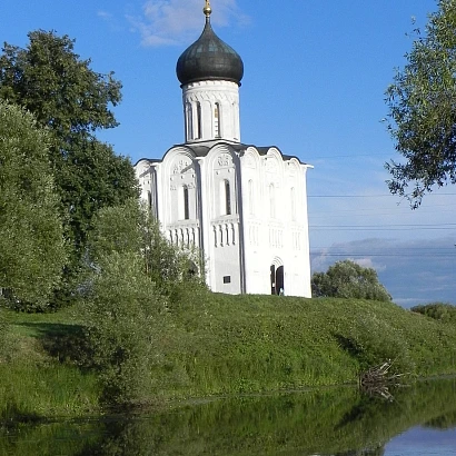 Прогулка к церкви Покрова-на-Нерли. Парящая меж синью речной и синью небесной белоснежная церковь Покрова на Нерли – один из самых узнаваемых храмов России, по образцу которого создано множество церквей в России и в православных епархиях за рубежом. Это великолепный образец торжественной, нарядной и в то же время лаконично скромной владимиро-суздальской архитектуры. Церковь была построена в XII веке и посвящена празднику Покрова Богоматери. Место для строительства церкви на отдалённом лугу рядом с рекой Нерль было выбрано самим князем Андреем Боголюбским. Отражаясь в водах Нерли, церковь Покрова словно возносится в лазурное небо в гармонии сияющих белых облаков.